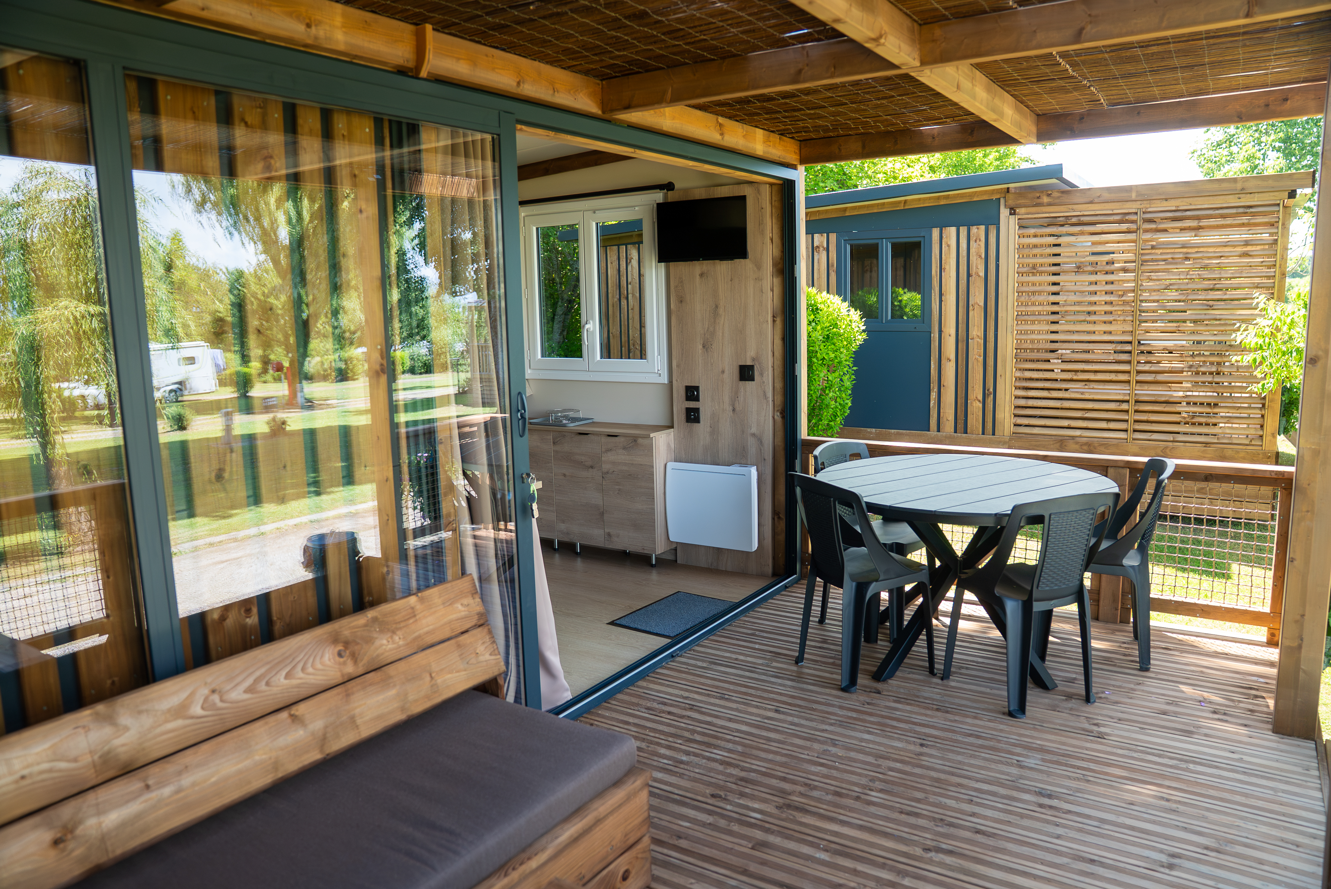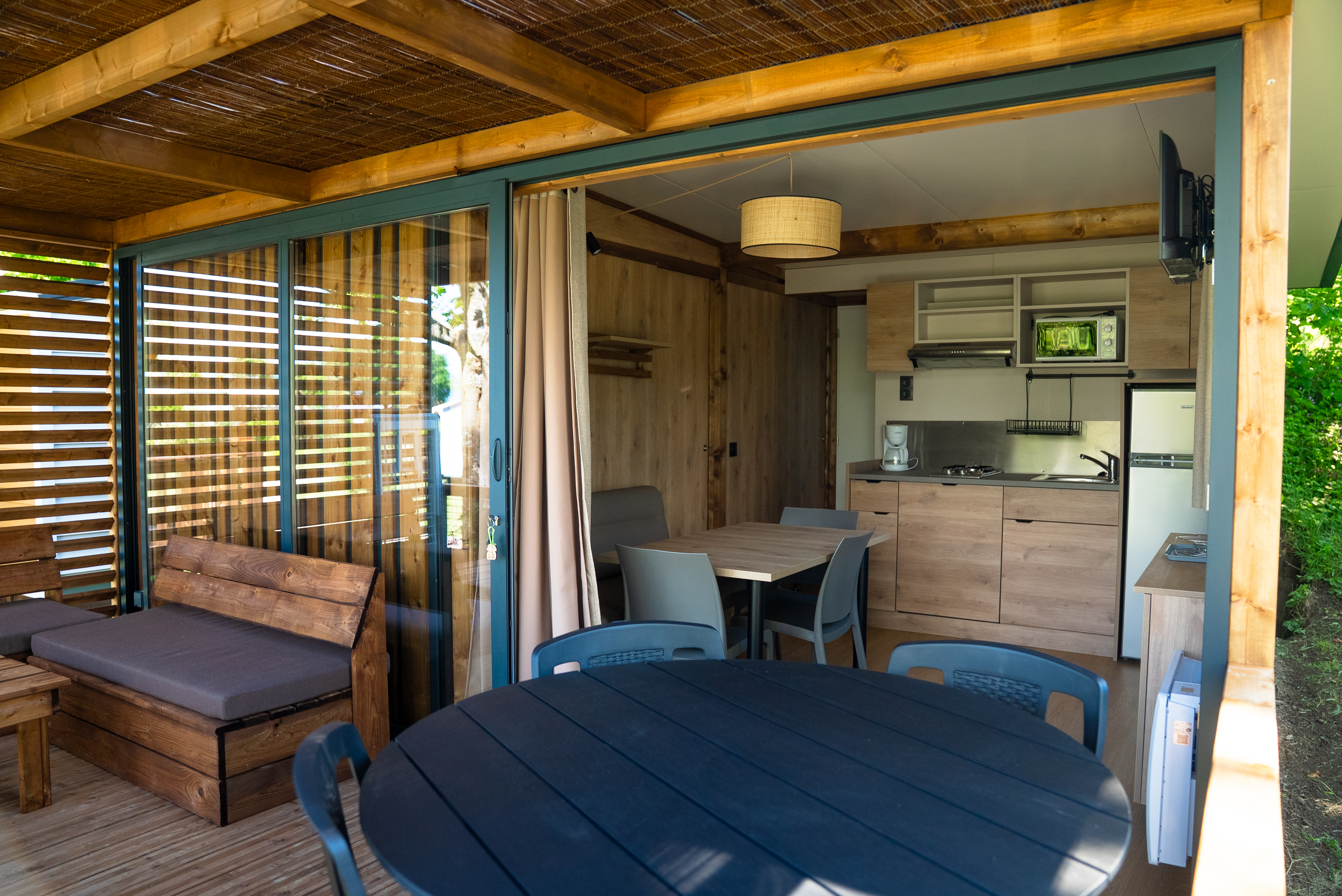 Mobile-home adapted to people with reduced mobility. Atypical accommodation: caravan, chalets, tent. Shuttle service 500m from the campsite.